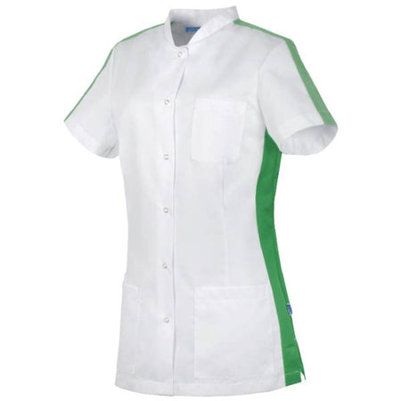 Getailleerd damesjack met opstaande boord, verdekte sluiting, borstzak. Functioneel en stijlvol voor professioneel gebruik