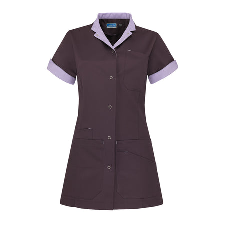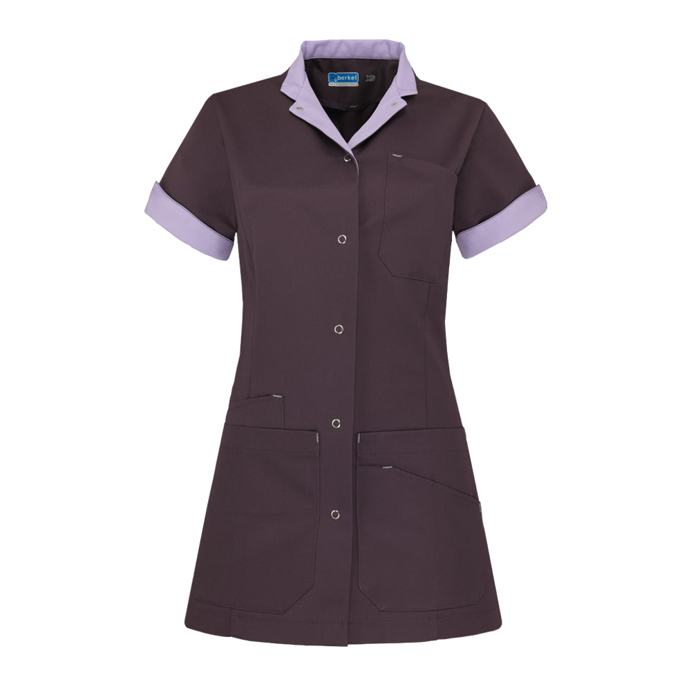 Populair, getailleerd damesjack met opstaande boord, diverse zakken, zijsplitten en kleurafzettingen aan binnenzijde van boord, mouwen en zijsplitten
