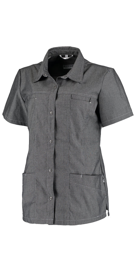 Getailleerd damesjack met moderne drukkers en zakken, denim look in zwart voor een professionele uitstraling
