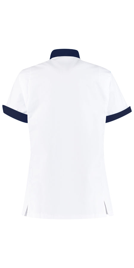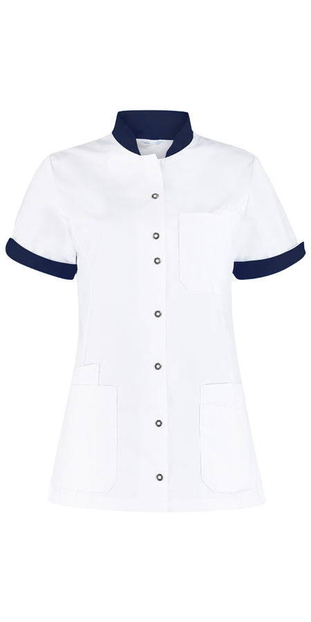 Damesjack Haen Mila wit/navy: moderne pasvorm, drukknoopsluiting, contrastdelen, 5 zakken, telescoopmouw voor extra bewegingsvrijheid