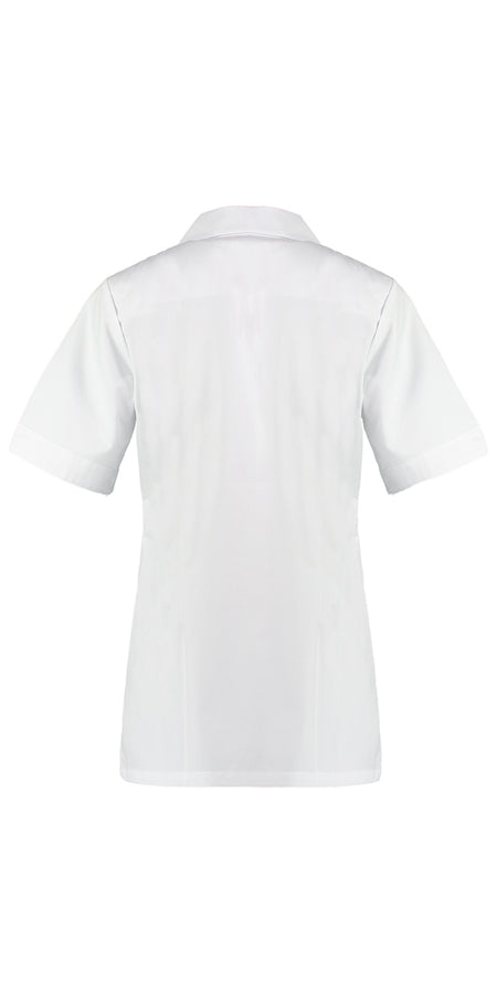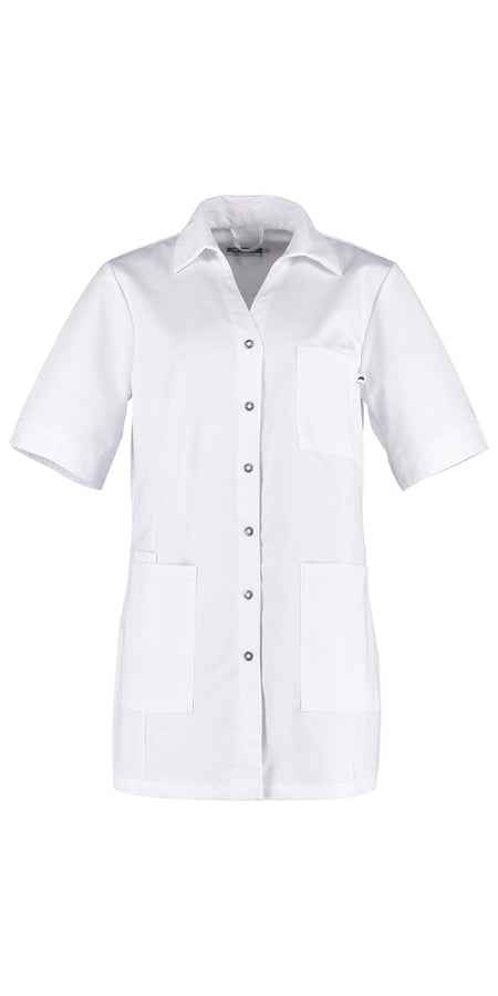 Een licht getailleerd damesjack met drukknoopsluitng, voorzien van een platte kraag met v-hals, borstzakje met pennenzakje, 2 opgestikte zakken, telefoonzakje en zijsplitjes. Verkrijgbaar in de maten XS tot en met 3XL