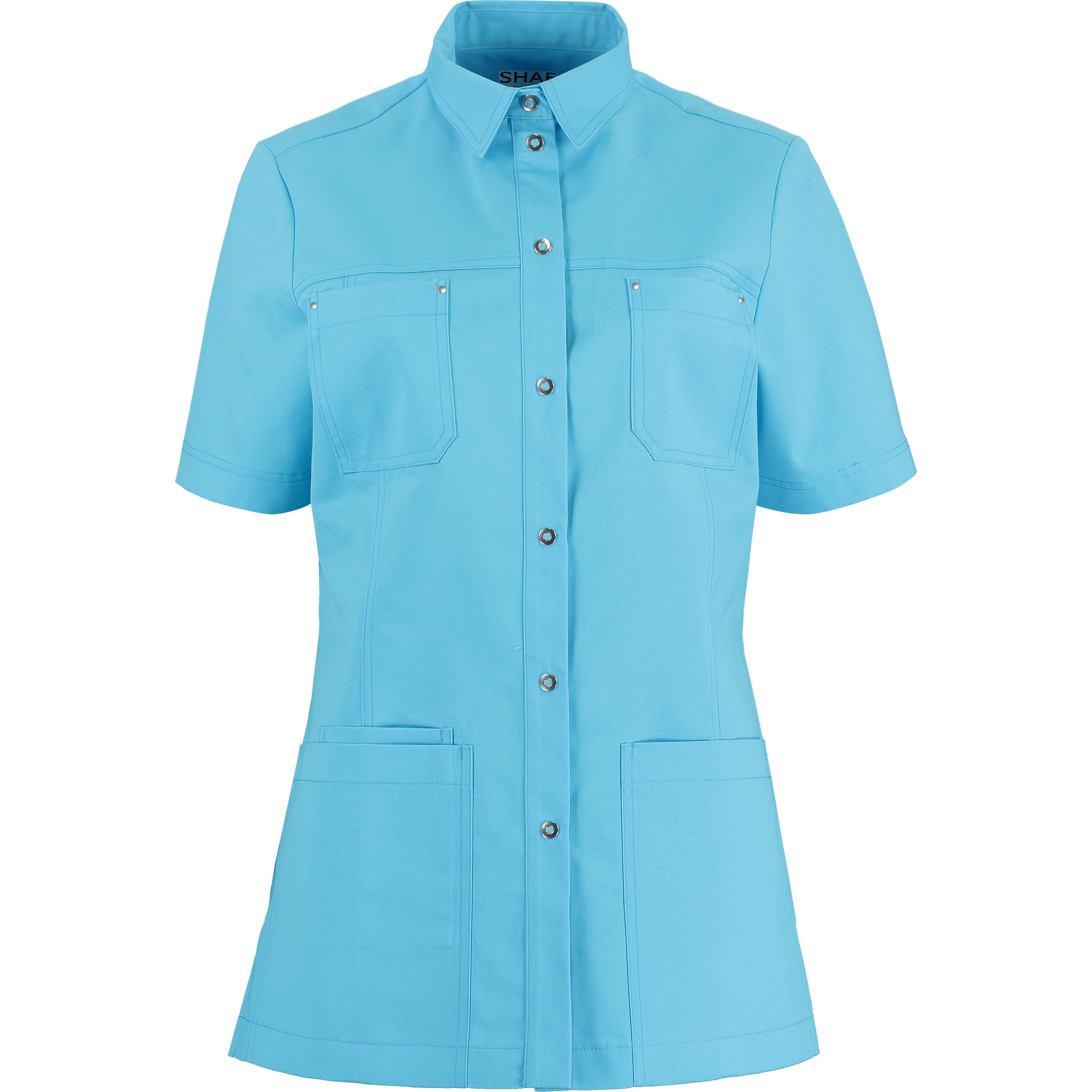 Comfort en elegantie in uw nieuwe favoriete tuniek. Dat is waar SHAE voor staat. Het casual dames tuniek Emma heeft een perfecte op het lichaam aansluitende pasvorm. Het tuniek is voorzien van 5 zakken waaronder een handige universele telefoonzak, twee zijsplitten, een staande kraag met voorsluiting en casual drukkers. Het tuniek is uitgevoerd in een speciaal geselecteerde gerecycled polyester met katoen. De mouwen zijn uitgevoerd in een tricot stof wat een ongekend comfortabele bewegingsvrijheid oplevert. Het tuniek Emma is zowel thuis als industrieel te wassen.