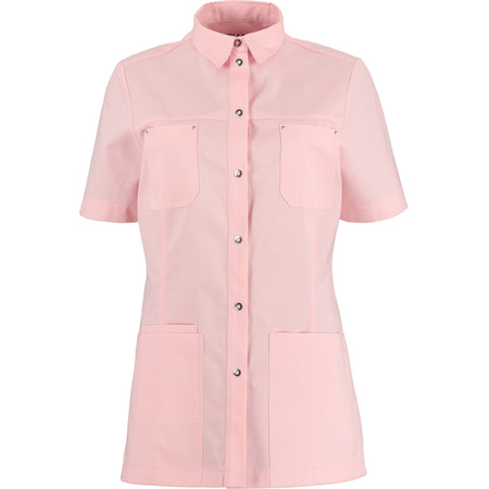 Comfort en elegantie in uw nieuwe favoriete tuniek. Dat is waar SHAE voor staat. Het casual dames tuniek Emma heeft een perfecte op het lichaam aansluitende pasvorm. Het tuniek is voorzien van 5 zakken waaronder een handige universele telefoonzak, twee zijsplitten, een staande kraag met voorsluiting en casual drukkers. Het tuniek is uitgevoerd in een speciaal geselecteerde gerecycled polyester met katoen. De mouwen zijn uitgevoerd in een tricot stof wat een ongekend comfortabele bewegingsvrijheid oplevert. Het tuniek Emma is zowel thuis als industrieel te wassen.