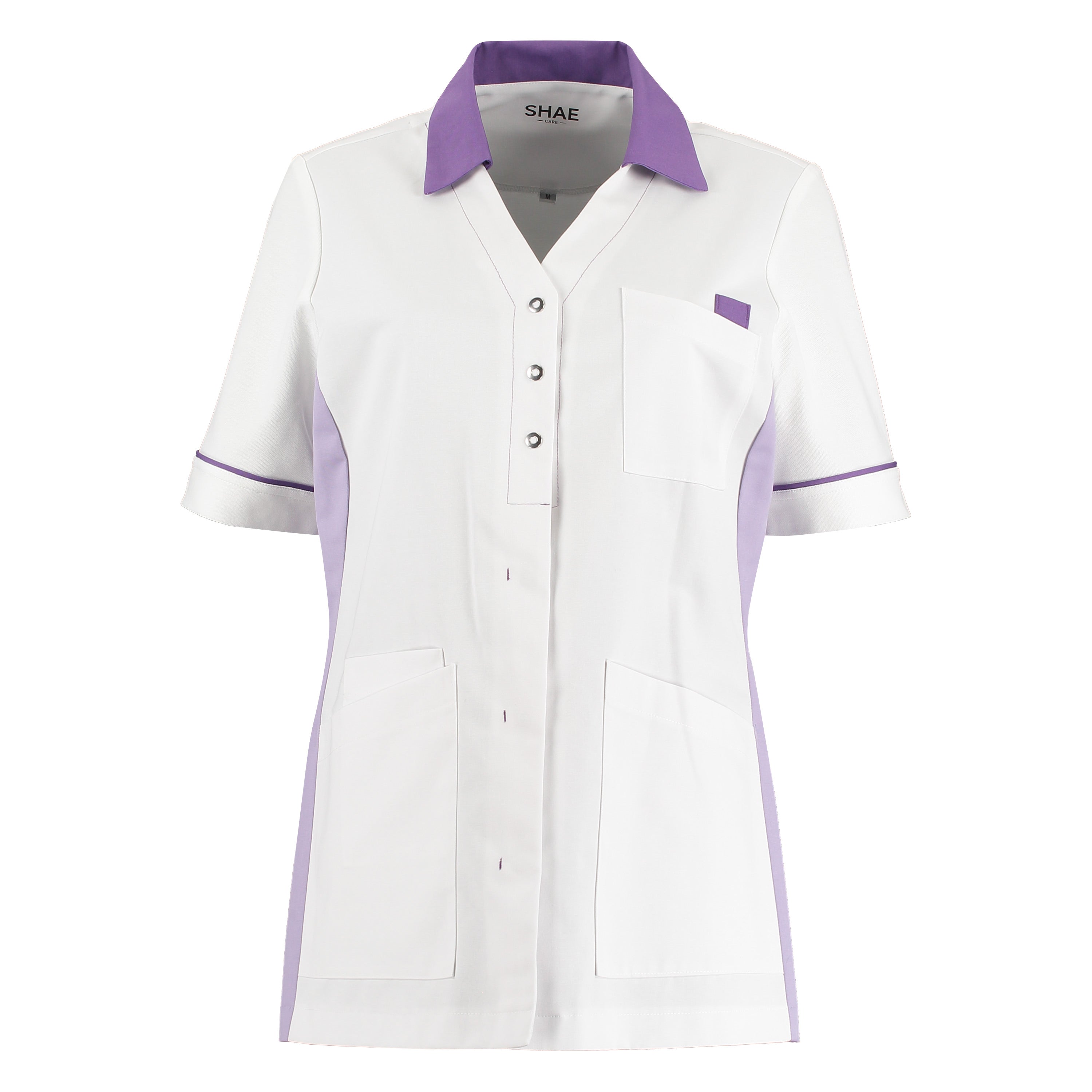 Comfort en elegantie in uw nieuwe favoriete tuniek. Dat is waar SHAE voor staat. Het dames tuniek Emma heeft een perfecte op het lichaam aansluitende pasvorm. Het tuniek is voorzien van 4 zakken waaronder een handige universele telefoonzak, twee zijsplitten, een halfblinde sluiting met boord. Het tuniek is uitgevoerd in een speciaal geselecteerde gerecycled polyester met katoen. De mouwen zijn uitgevoerd in een tricot stof wat een ongekend comfortabele bewegingsvrijheid oplevert. Het tuniek Emma is zowel thuis als industrieel te wassen