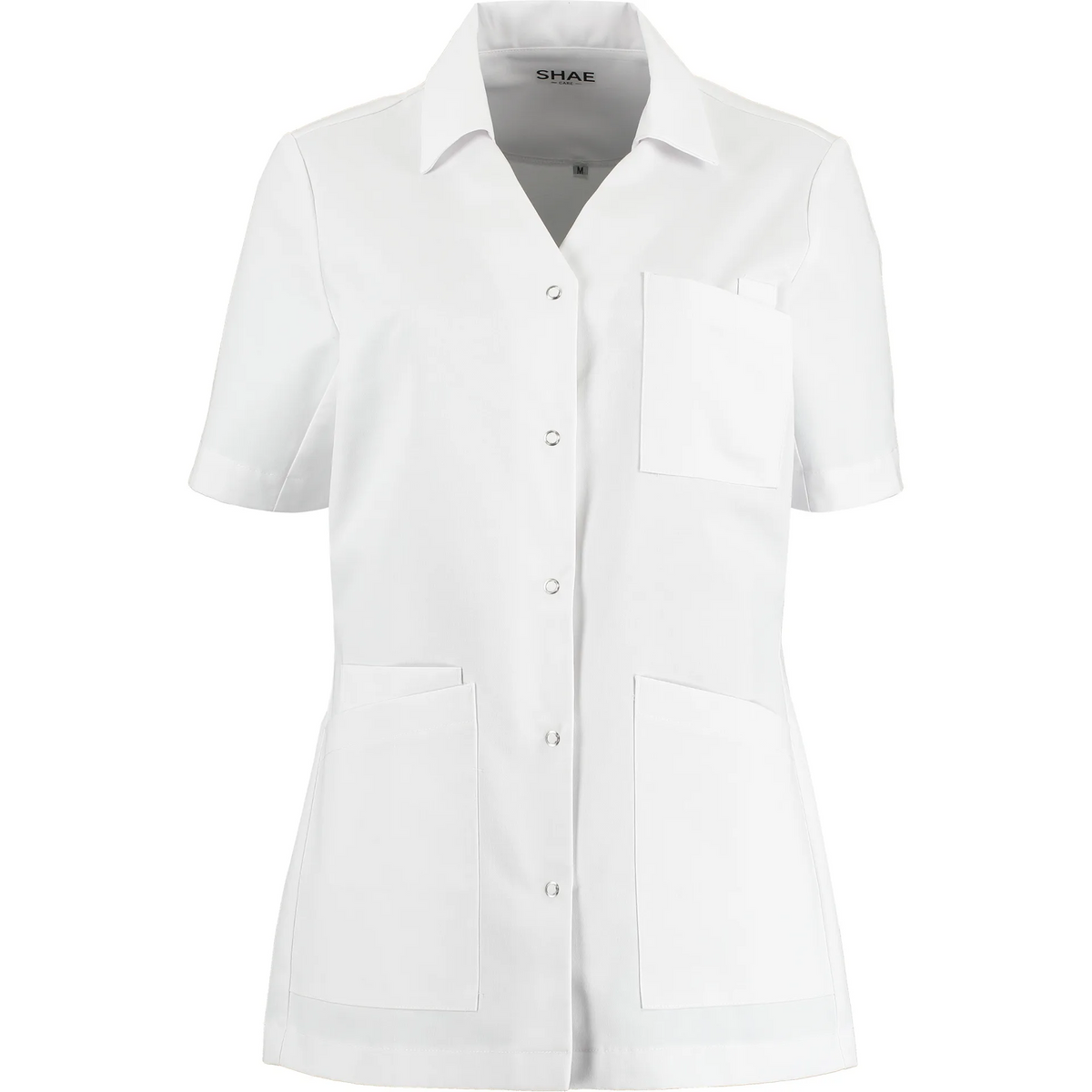 Comfort en elegantie gecombineerd in uw nieuwe favoriete tuniek! Dat is waar SHAE voor staat. Het basic model Luna heeft een perfecte op het lichaam aansluitende pasvorm. Het tuniek is voorzien van 4 zakken waaronder een handige universele telefoonzak, twee zijsplitten, een V-hals met een staande kraag en een praktische doorknoopsluiting. Het tuniek is uitgevoerd in een speciaal geselecteerde gerecycled polyester met katoen. De mouwen kunnen bij warmere temperaturen omgeslagen worden. Het tuniek Luna is zowel thuis als industrieel te wassen.