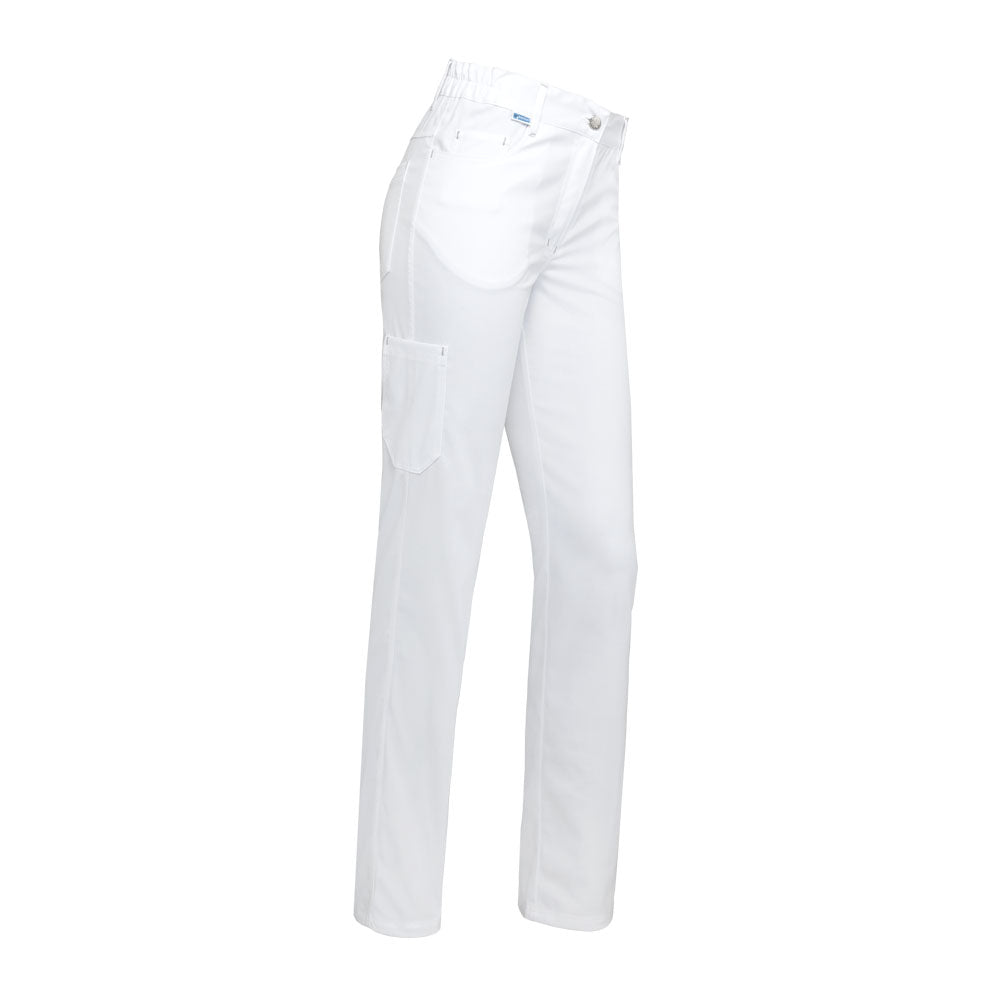 Comfortabele damespantalon met jeans-look, stretch, dijbeenzak en elastische tailleband voor optimale bewegingsvrijheid