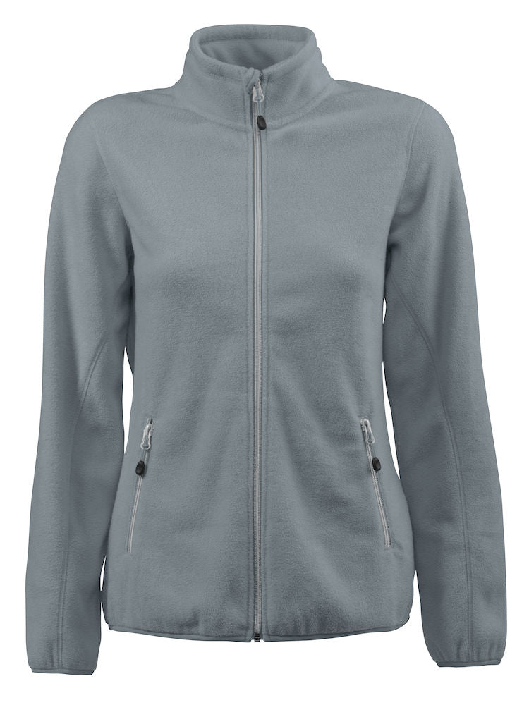 Vrouwelijke fleecejas met geborstelde binnen- en buitenkant, contrasterende rits en veilige zakken