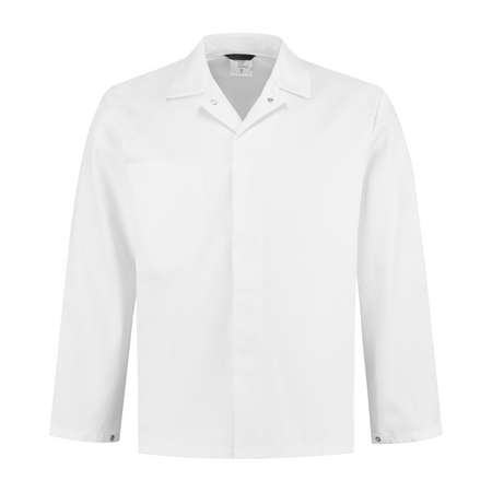 Foodjas kort wit 65% polyester, 35% katoen, drukknoopsluiting, klittenband binnenzak, drukknop manchetten
