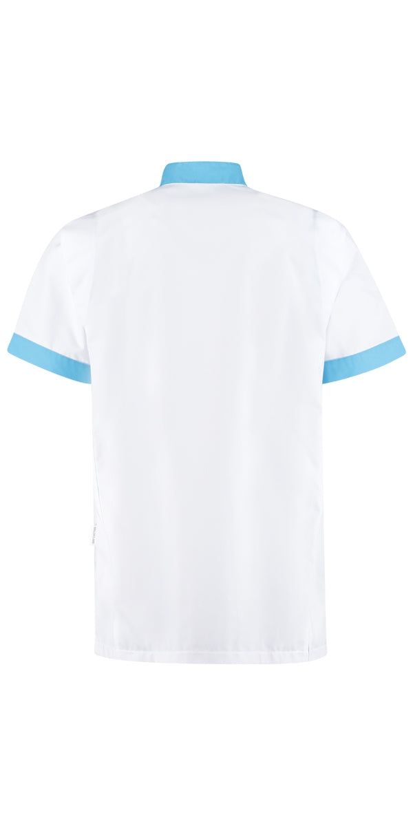 Stijlvol herenjack met contrastdessins, drukknoopsluiting, borstzak met pennenvak en tricot telescoopmouw voor bewegingsvrijheid