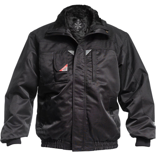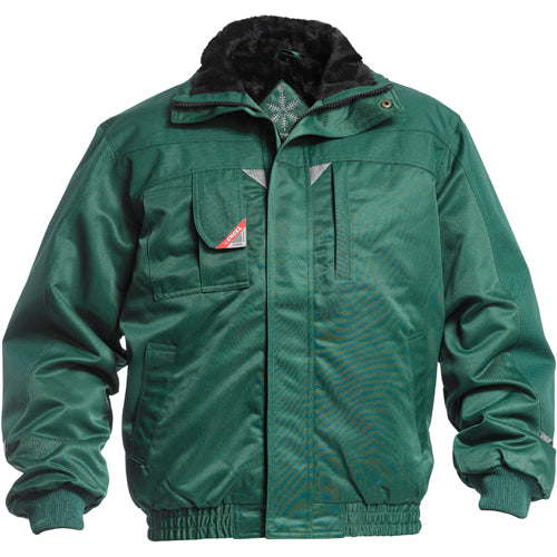 1-kleurige pilot jack met teddy voering en gewatteerde nylon voering. Opbergmogelijkheden: gsm-zak met klep op voorpand, potloodzak en steekzak. Binnenzak met ritssluiting. Verstelbare kraag. Verdekte ritssluiting met logotrekker in de rits. Boord met elastiek. Mogelijkheid voor opdruk op linker voor- en rugpand. Ritssluiting in voering voor druk/borduursel. Wind- en waterafwijzend. Het jack is ook verkrijgbaar met reflectorband rond de mouwen en bovenlijf in marine (kleur 6) dess. nr. 1211-912. Buitenstof: 100% polyester met PU-coating 235 g/m². Voering: 100% gewatteerd nylon + 100% polyesterpile. Maten: XS - 4XL