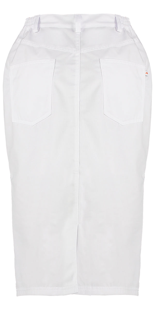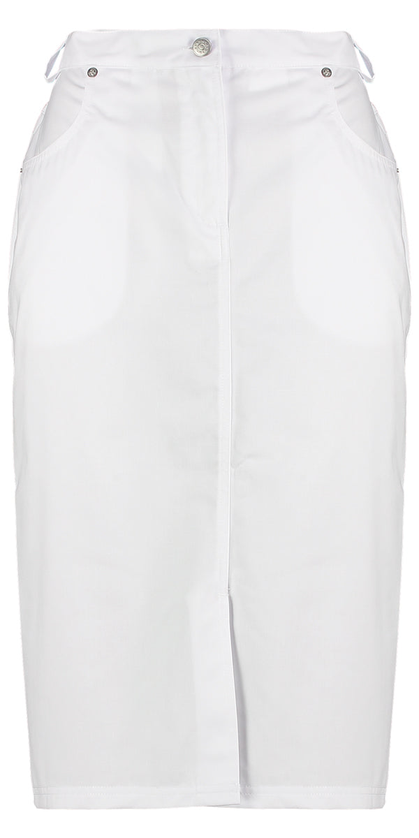 Jeansmodel rok met elastische taille, 4 zakken, telefoonzakje. Lengte 65 cm, ideaal voor dagelijks zakelijk gebruik
